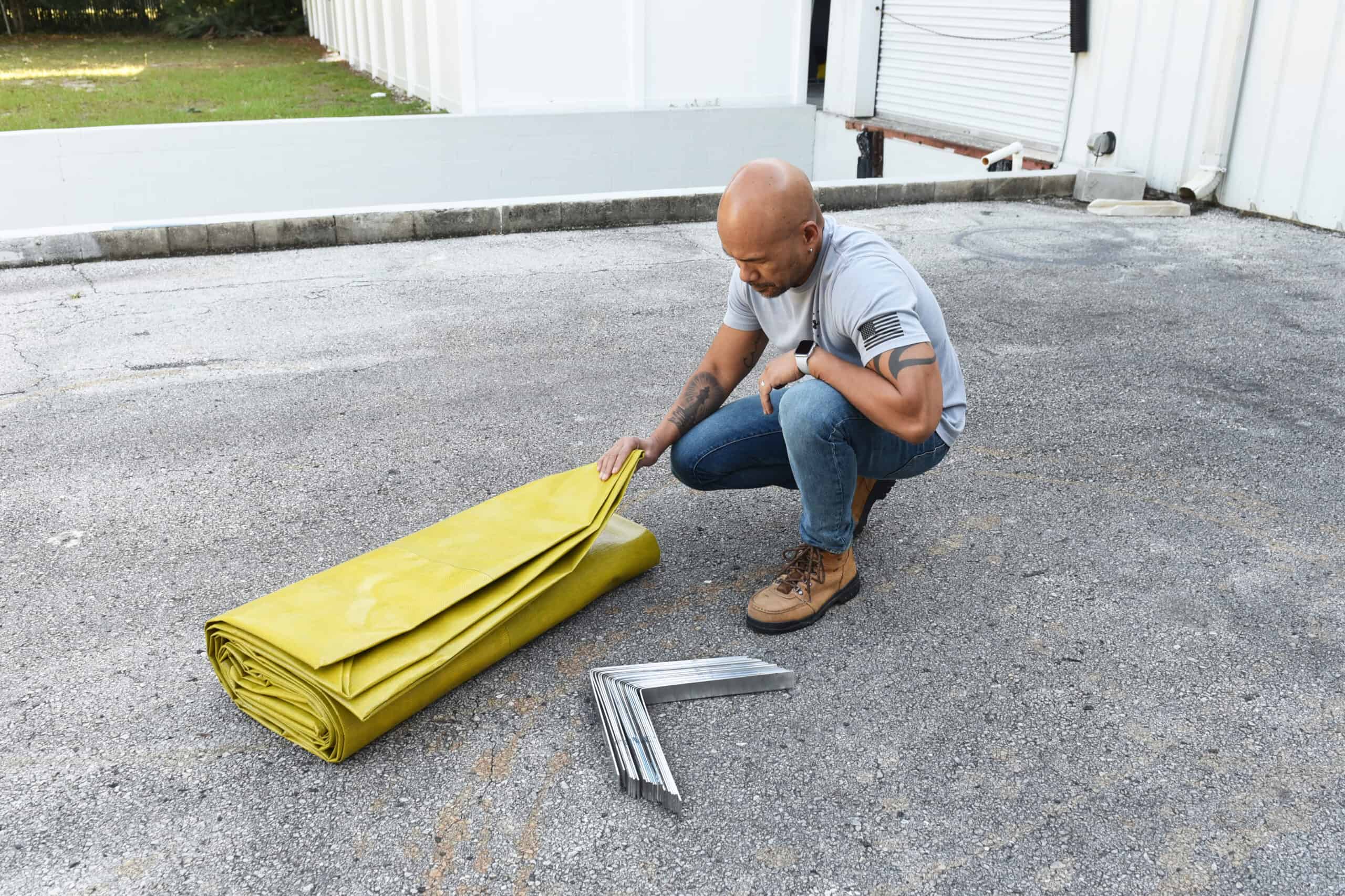 The ground tarp provides added protection from punctures or damage from beneath the Ultra-Containment Berm. Standard procedure is to sweep the area of any rocks or debris, then place the ground tarp down followed by the containment berm.
