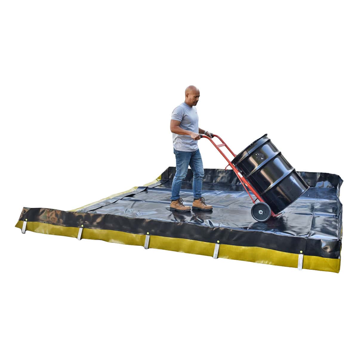 Just like the standard Economy Model Ultra-Containment Berm, this PE model uses a reinforced polyethylene (RPE) 30-mil liner for maximum durability. The L-shaped brackets provide sturdy sidewalls, yet its frameless design makes it quick to deploy inside or outside.